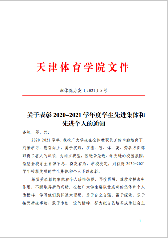 【表彰决定】关于表彰2020-2021学年度学生先进集体和先进个人的通知