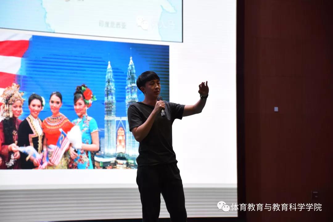 随后,来自马来西亚拉曼大学的蔡志先、余贤惠、陈建南、黄书峰四位学生发言。他们介绍了马来西亚的气候环境、民族和文化、宗教信仰、岛屿文化和美食。他们学习的专业是体育运动科学,通过视频和图片,展示了专业课上运动的实验仪器以及上课模式,加深了朱古力av