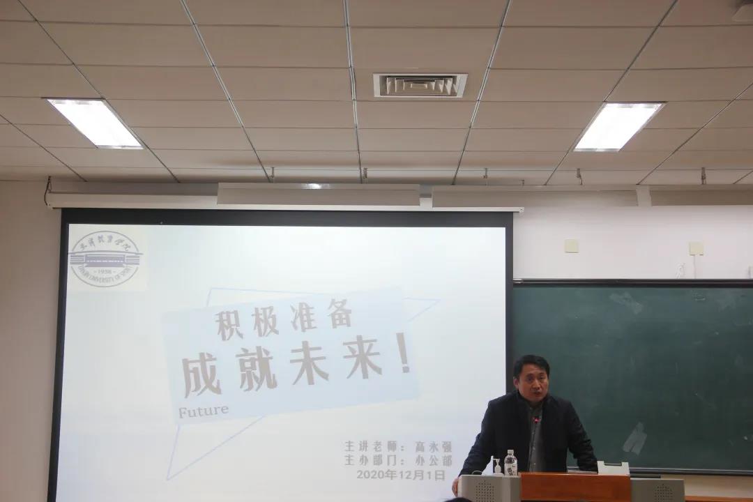 马克思主义学院院长高永强主讲,参与本次活动的有2019级和2020级研究生。高老师结合思想政治教育,提出新时代研究生该如何看待“优就业”问题,引发在座学生的深入思考。在当今社会教育背景下,作为新时代研究生,如何为就业做好准备,是每一名研究生面临的一道难题。在课堂中,高老师向研究生同学们明确分析了目前我国体育生的就业形势与发展前景,使大家对未来的职业道路有了更清晰的认识。