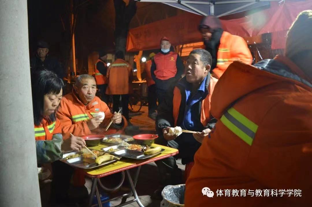 12月28日晨,体育教育与教育科学学院体育教育训练学专业研究生一行10人,由学院辅导员安明焘带队往静海区“爱心粥屋”开展慰问环卫工人、提供免费早餐志愿服务。这是本学期学院第4次派出学生志愿者参与相关活动。