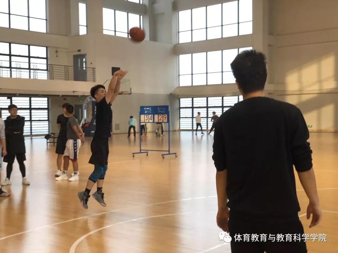 与此同时,另外一场比赛也在如火如荼的进行着—体训专业对阵体教专业。此次比赛比分你追我赶,刚开始体教队领先紧接着便被体训一个三分超越,一时半会难分伯仲。双方的助威团也真是相当给力,大声的呼喊着加油,比赛的同学劲头也是更足了,最后由体教班险胜。