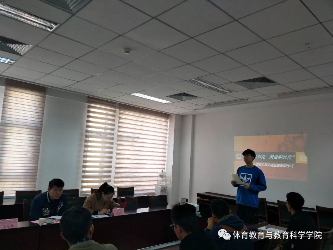 10月28日上午,体育教育与教育科学学院在特教楼507举行了“青春心向党 阅读新时代”读书活动心得交流会暨表彰会。辅导员杨奕娇老师、王星翰老师出席了此次活动。活动由学生孔垂鑫主持。