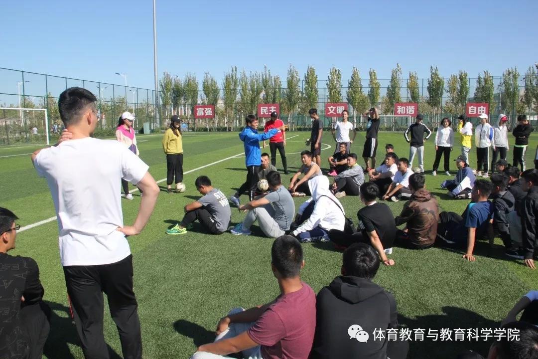 活动伊始,由研会文体部部长李斌带领同学们以传球与射门游戏进行了热身活动,整个游戏中大家团结协作、其乐融融。