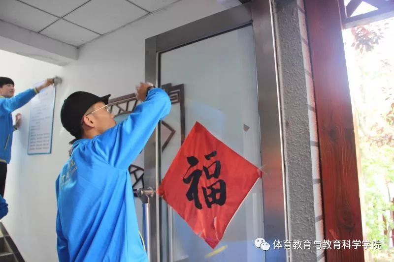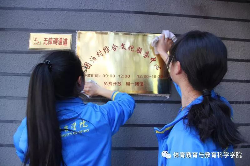 学生严守纪律,积极劳动,并主动与在活动中心休息娱乐的村民交流,了解了村民积极向上的生活状态,并展现出体院学子良好的精神状态。