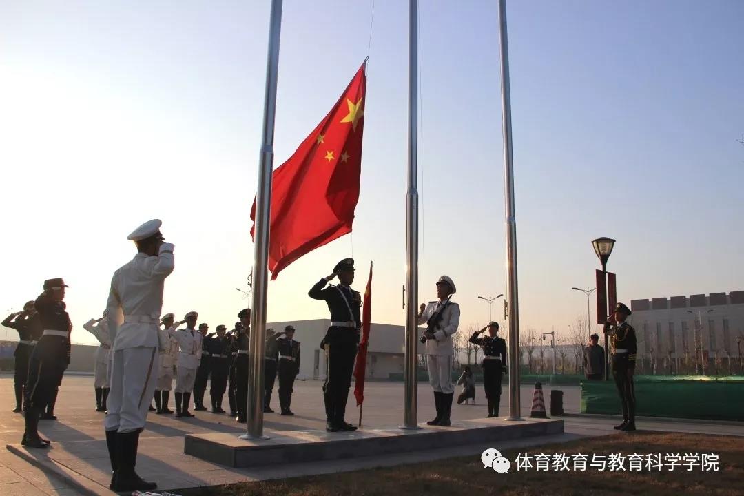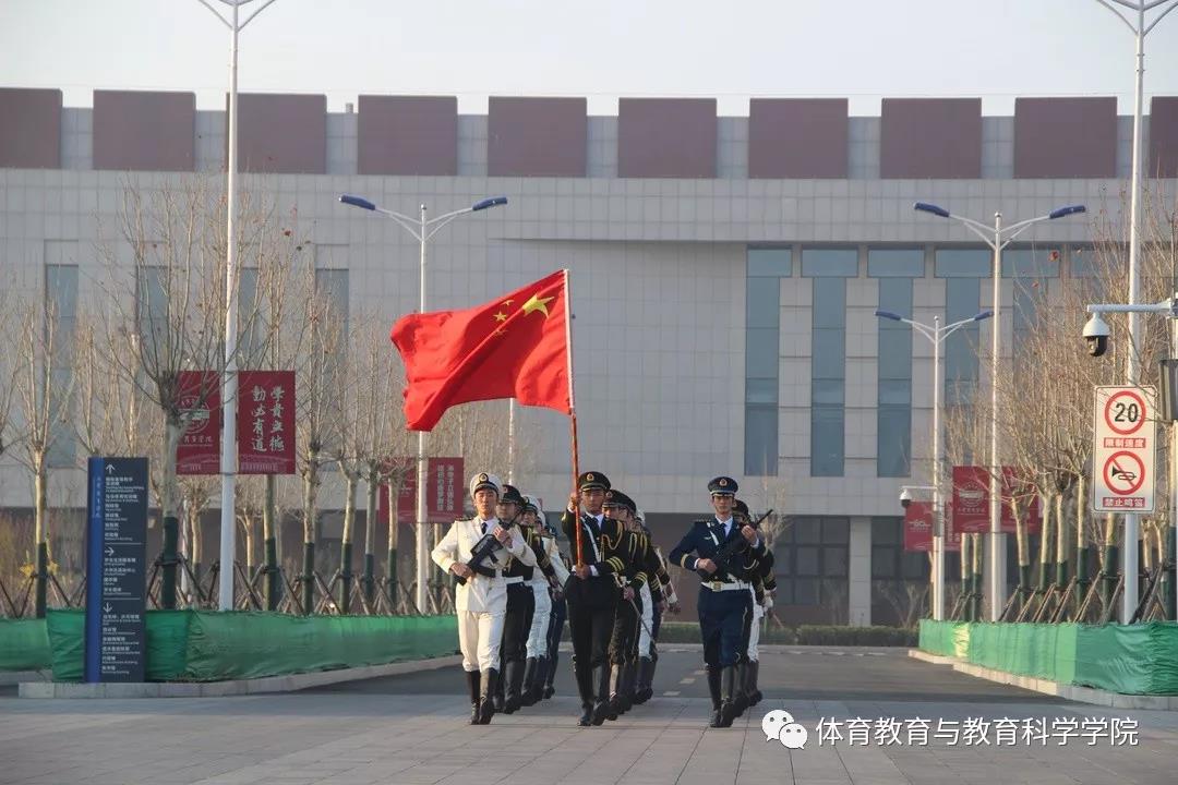 东门广场举行。体育教育与教育科学学院2017级辅导员杨奕娇、2017级入党积极分子以及推优人员参加。墨盾大队国旗护卫队负责仪式的升旗环节。