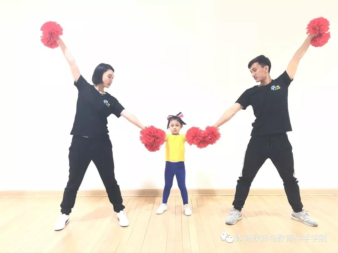 由河西区梧桐小学啦啦队教练王斯以及双胞胎女儿之一的黄妙萱,展示和教授由天津市啦啦操协会创编的亲子啦啦操推广套路。值得一提的是,王斯也曾是O-Star啦啦队的优秀队长。