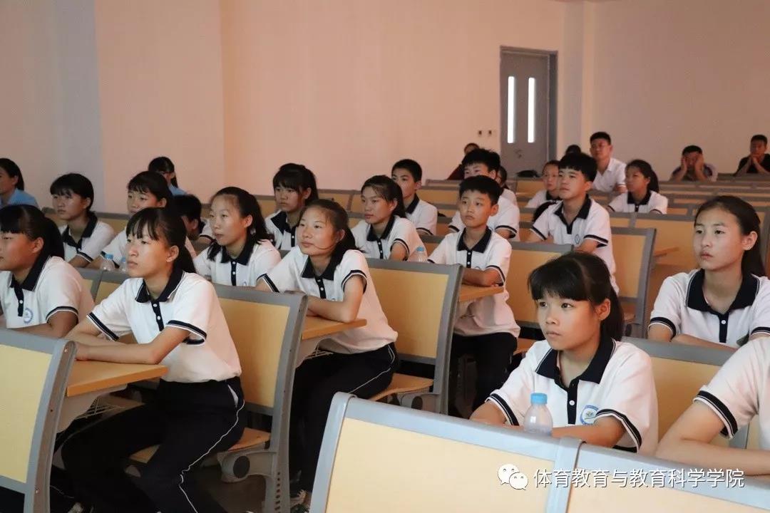 期间,为搭建体育教育专业学生的教学实践的平台,激发学生对专业学习的兴趣,体育教育与教育科学学院和杨成庄乡中学签订了《社会实践基地共建协议书》并授牌,确立了互为教育实践基地。之后,由志愿者服务团队为营员进行安全教育宣讲,希望营员们严格遵守纪律,提高安全意识。