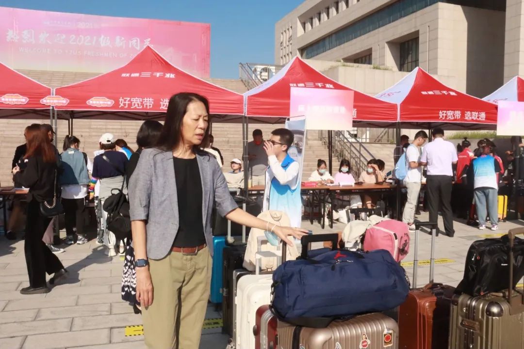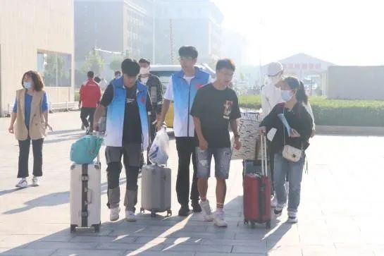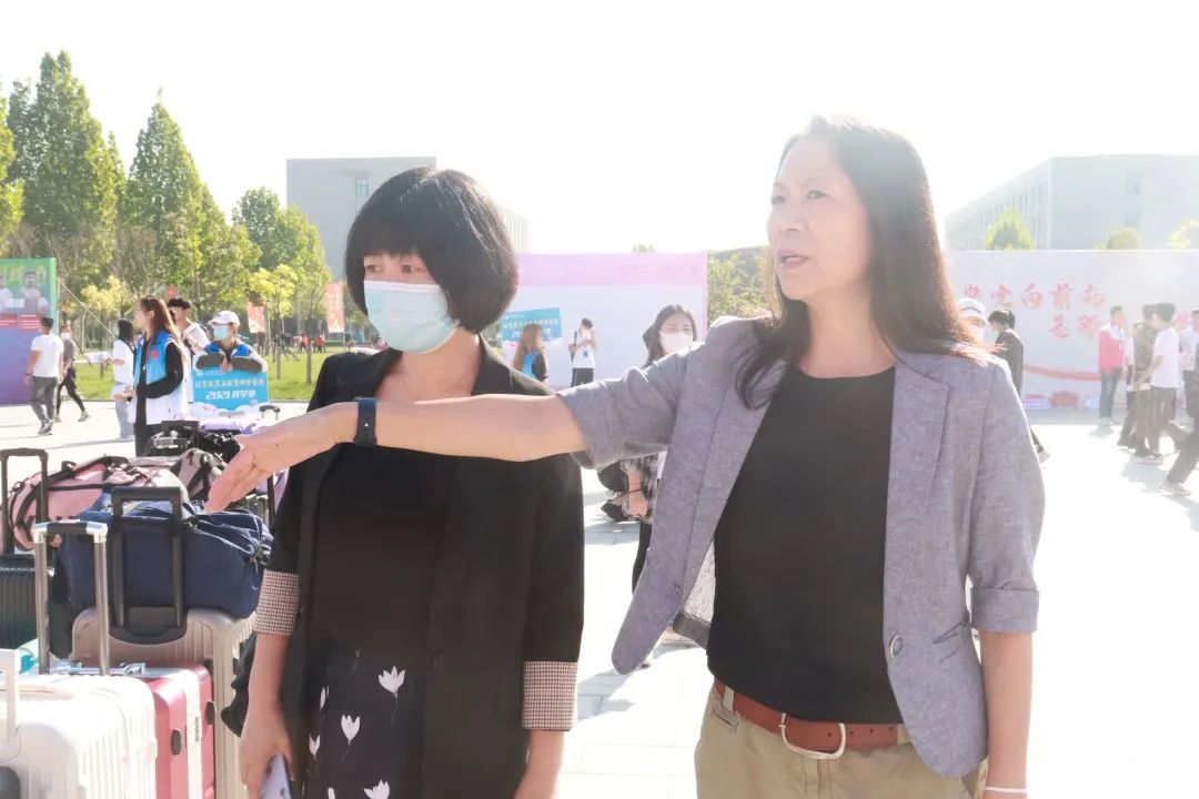 迎新现场,志愿者热情接待新同学,提供报到引导、行李搬运、解答咨询等服务。