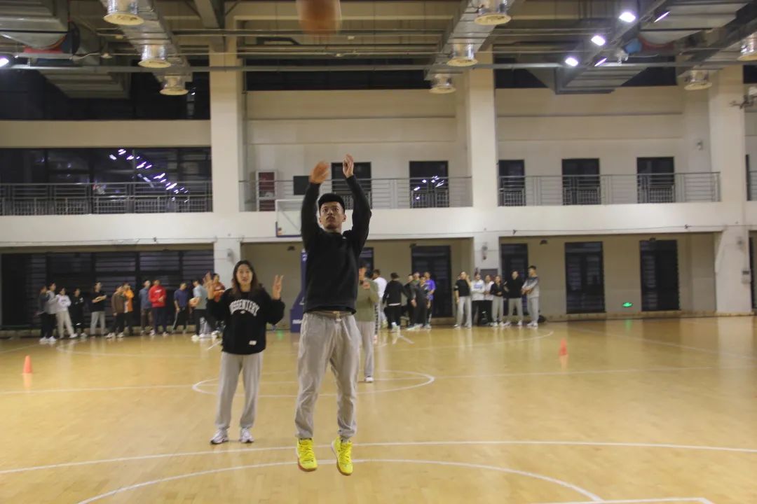 讲解结束后,同学们随机分组,以组为单位进行了“心心相印”、“运球接力赛”、“投篮积分赛”等小游戏和比赛。在游戏中同学们团结协作、互相配合,同学们尽情挥洒汗水,场馆中充满欢声笑语。