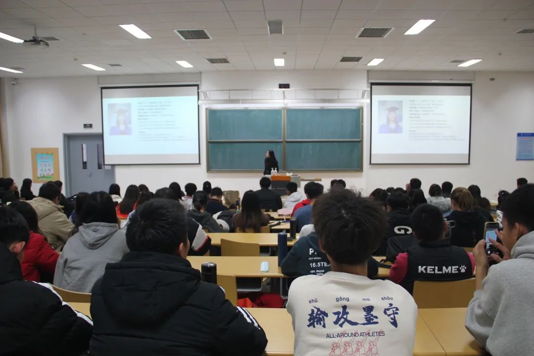 讲座开始,李紫薇学姐给大家一一解答了“什么是博士?”“读博在将来是否能成为一种趋势?”“如何准备?”“考上后又是怎样的感受?”随后又用有趣的漫画提醒同学们:“不论走到哪一步,都不要沾沾自喜,‘不积跬步无以至千里,不积小流无以成江河’,只有踏实努力慢慢积累,才能有收获。”