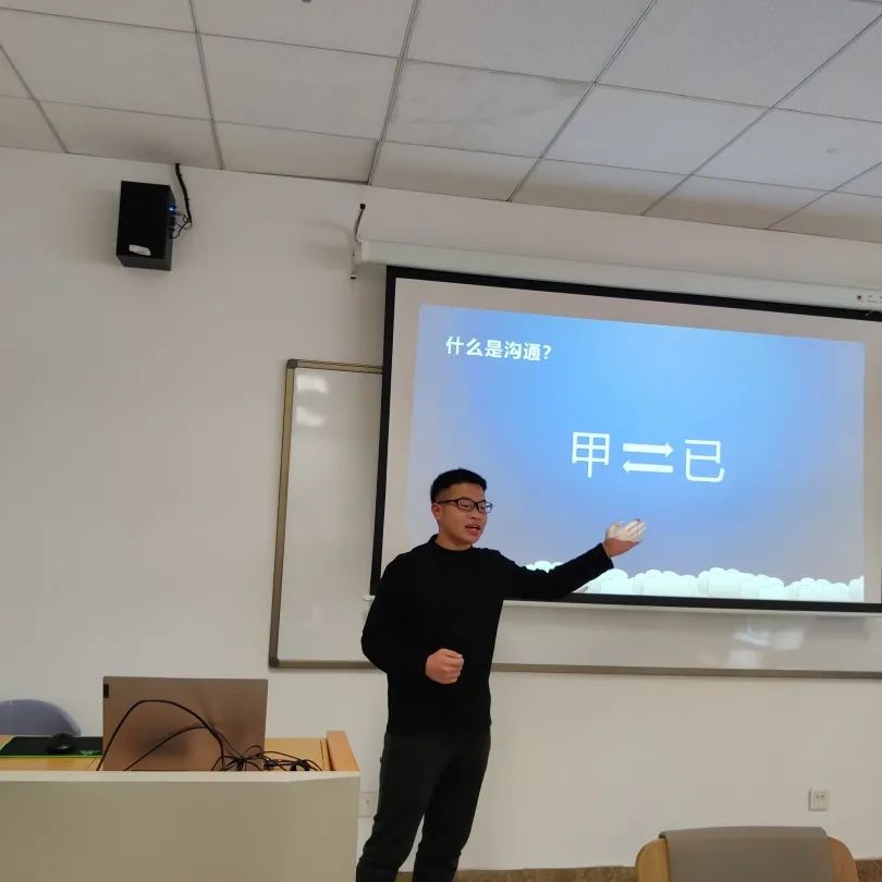 在孙老师的启发中,同学们也纷纷分享自己在书籍中感悟到的对于沟通的理解和认识。李静静同学与大家分享了《会说话的人,人生都不会太累》和《少有人走的路》,告诉大家沟通中语言使用的重要性;周森同学与大家讨论了“什么是沟通”,提醒大家沟通的同时更要学会聆听他人;高洪森同学向大家介绍了在生活和学习中,我们要学会与老师、长辈和他人进行有效地沟通,要学会换位思考,做到尊重他人;张舜同学通过分享自己在宿舍和球队的点滴小事,带大家体会了沟通的重要性;李小龙同学通过“晏子使楚”的故事给大家分享了沟通的小技巧。