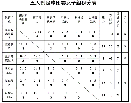 女足球员们的表现同样精彩,在足球场上激情上演。本次比赛女子组共6支队伍,采用单循环赛,上演了30场精彩比赛,一展女足风采。其中,“纵横四海队”越战越勇,以零败的好成绩摘得桂冠,“科琳战队”斩获四场拿下亚军,“蓝色精灵队”以三胜一平的不错成绩取得季军。场上每位女足球员进取拼搏、一路奋勇、展现风采,使这次的足球赛格外绚丽多彩,生动,分外成功!