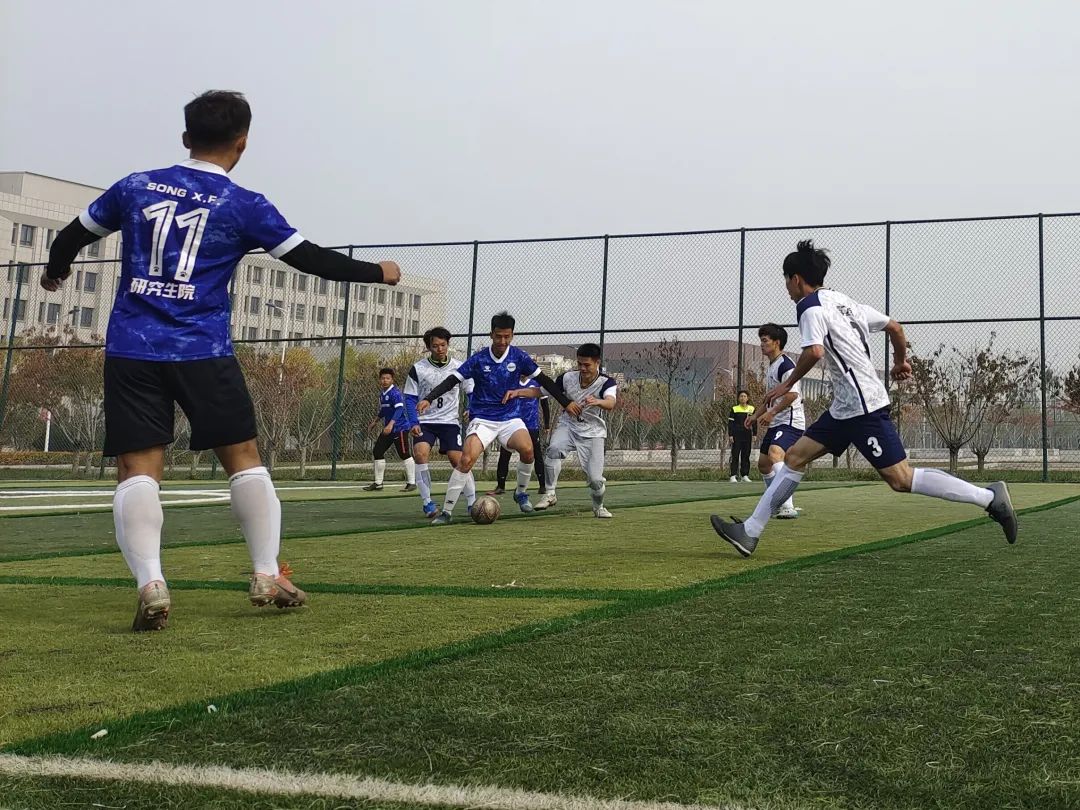 经过两周的激烈角逐,男子组共9支参赛队伍上演了20场精彩赛事。绿茵场上运动员们各显身手、积极跑动、顽强拼搏。其中A组 “蓝魔队”、“超人队”,B组 “X-发电站队”、“零一队”成功进入淘汰赛。体育教育与教育科学学院院长孙延林亲临比赛现场,为运动员们加油鼓劲。淘汰赛中,“蓝魔队”对“零一队”1:3不敌对手, “X-发电站队”对“超人队”4:1战胜对手。“零一队”和“X-发电站队”双双进入决赛。在季军争夺战中,“蓝魔队”以3:0战“超人队”成功拿下季军。“零一队”和“X-发电站队”竞争激烈,难分胜负。场上,运动员精准对角长传,闪转腾挪过人,单刀快速推进,后卫倒地防守,力拔千钧射门,守门员在赛场上迅速巧妙扑救球。场下观众呐喊声、欢呼声此起彼伏,最后两队以精彩的点球大战结束比赛。“零一队”一路过关斩将,最终以2:0的比分优势获得此次男子组的冠军。