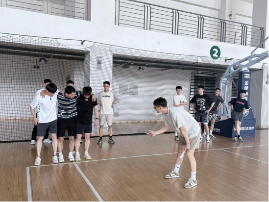 活动围绕“明辨I人”、“三角跳比赛”、“盲人方阵”以及“反向追逐”四大环节展开。在“明辨I人”游戏中,参与者通过观察他人社交表现猜测性格倾向,并结合MBTI理论解析行为动机。在“三角跳比赛”与“盲人方阵”中,学生们以小组形式挑战任务,展现了不同MBTI类型学生的优势与互补。