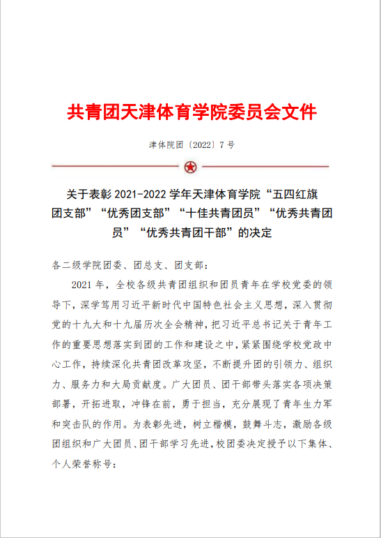 【表彰决定】关于表彰2021-2022学年朱古力av “五四红旗团支部”“优秀团支部”“十佳共青团员”“优秀共青团员”“优秀共青团干部”的决定