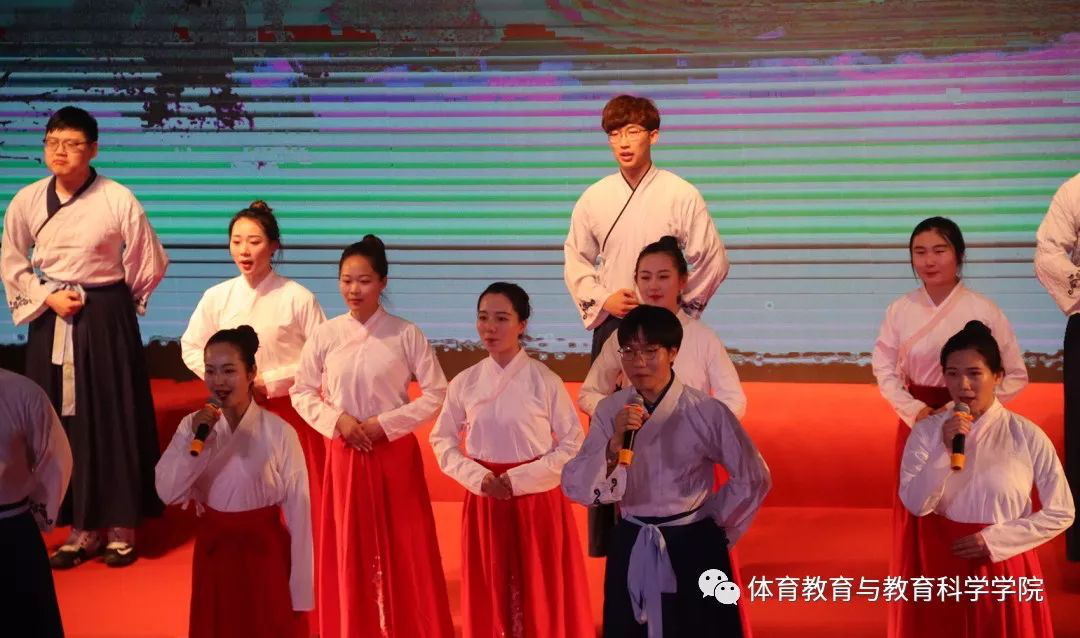 学生表演《诵经典,传文化》,通过原创的诵读形式展现了传统文化的无穷魅力。以吟诵的腔调回荡起春秋先贤曾子的“吾日三省吾身”,带领我们穿越历史重拾中华传统文化之中的精髓;青春是奔涌的热血,是伟大领袖毛主席在《沁园春·雪》中“俱往矣,数风流人物,还看今朝”的气概;当代大学生心怀理想与担当,是中华传统文化的继承者,是弘扬中华传统文化的华夏儿郎。