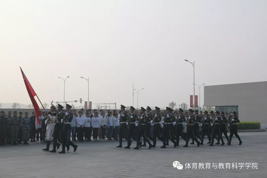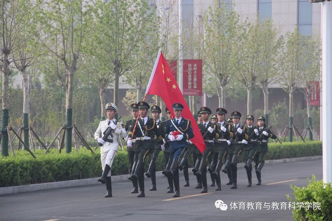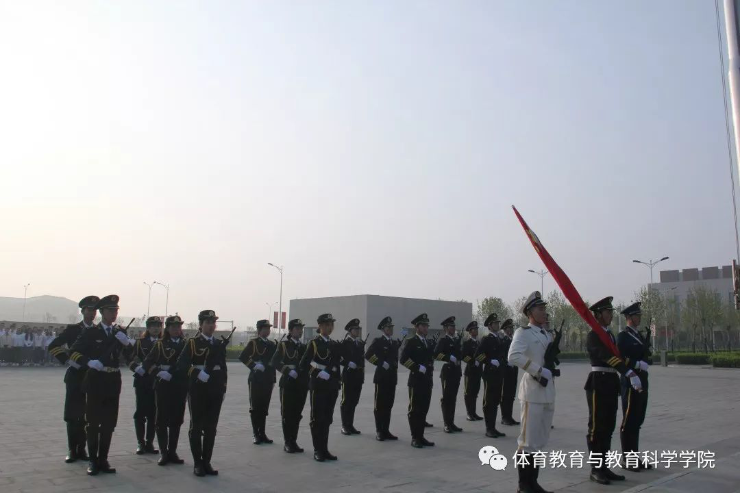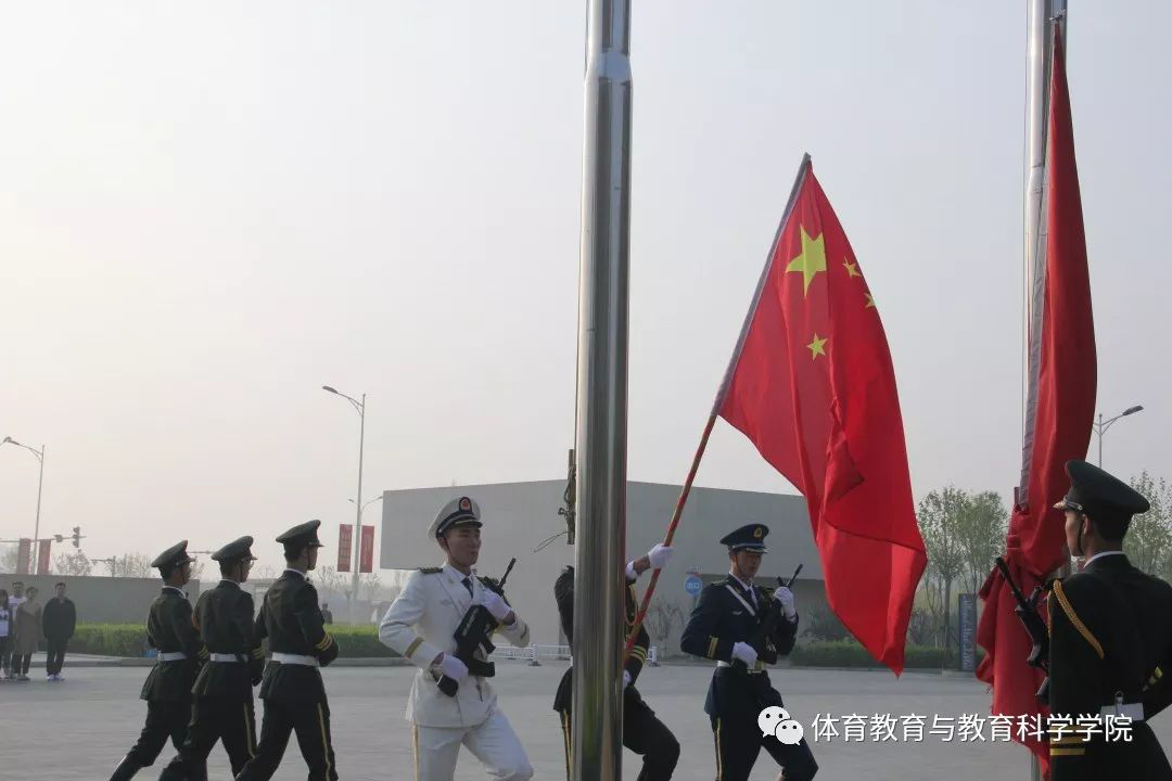 东门广场举行。体育教育与教育科学学院2017、2018级研究生辅导员孙志文、张粲,2017、2018级入党积极分子及学生骨干参加。墨盾大队国旗护卫队负责仪式的升旗环节。此次升旗仪式由2017级研究生王梓楚主持。在爱国主义教育环节,并带领大家诵读中华经典,抒发爱国情怀。