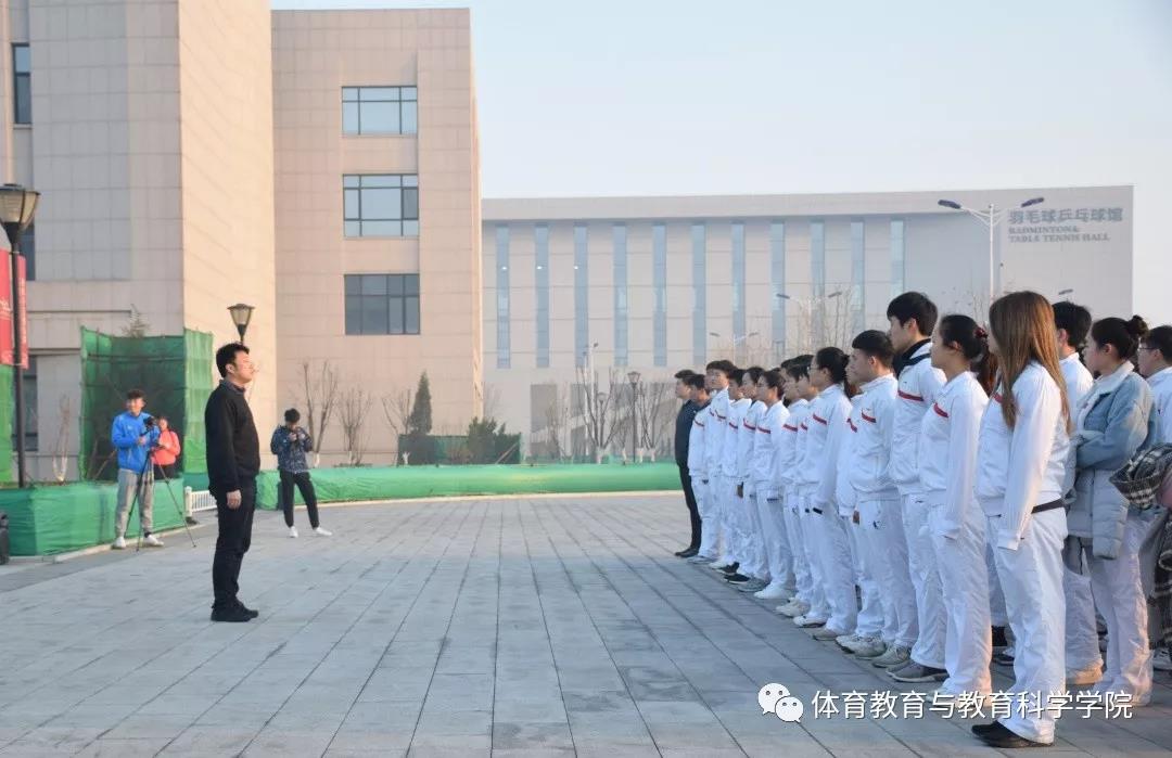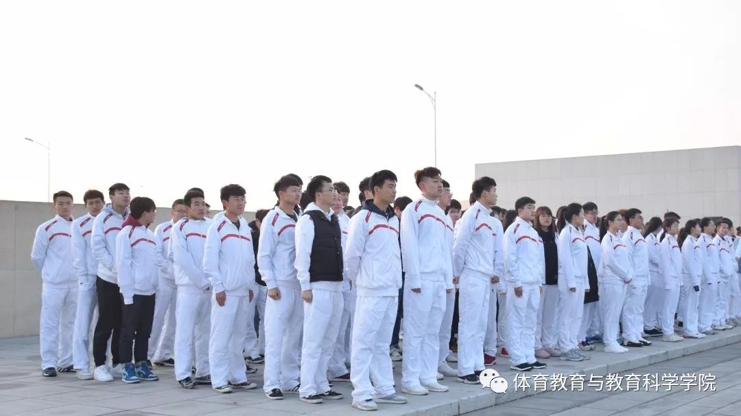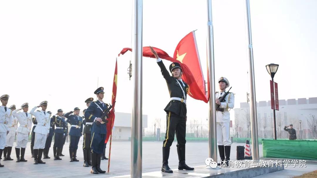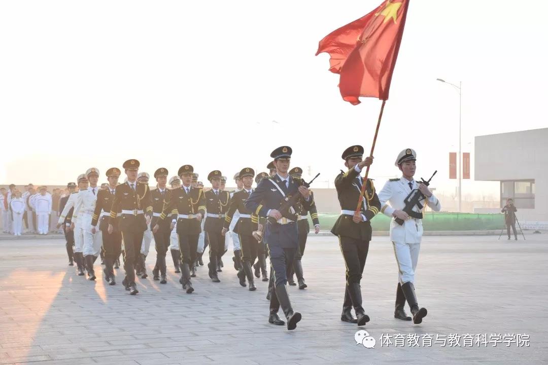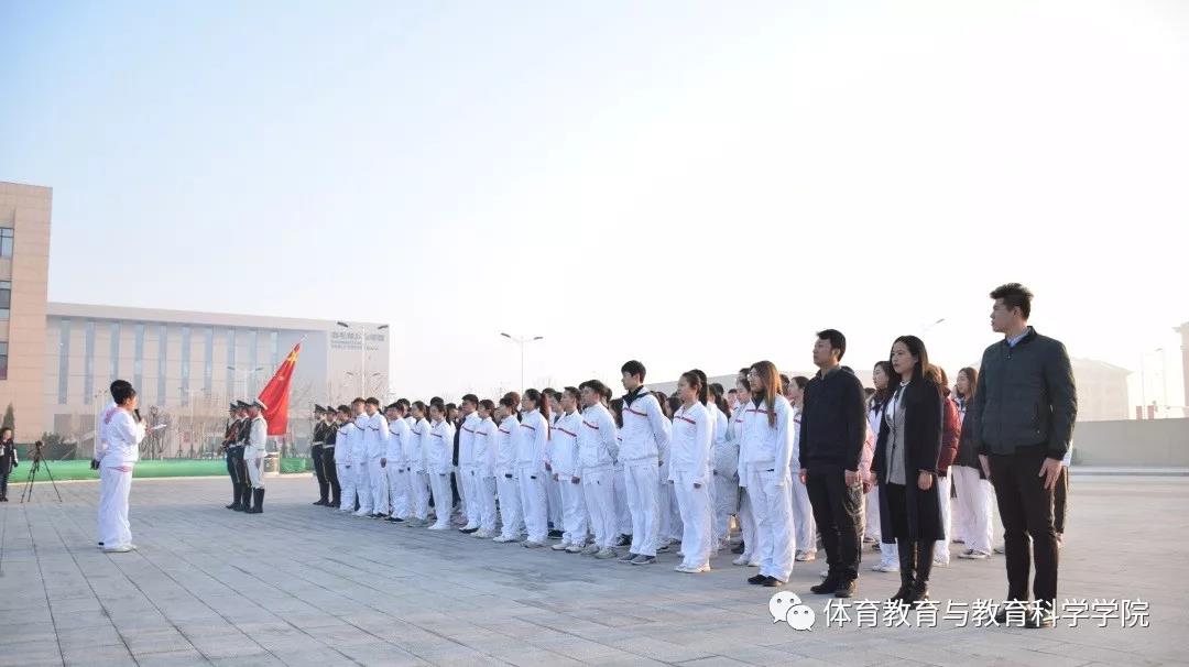 东门广场举行。体育教育与教育科学学院学工办主任、团委书记张明,本科2016级辅导员王云、王星翰,以及2016级预备党员、入党积极分子参加。墨盾大队国旗护卫队负责仪式的升旗环节;在爱国主义教育环节中,由2016级学生代表马一平、王建起带领大家诵读中华经典,抒发爱国情怀。