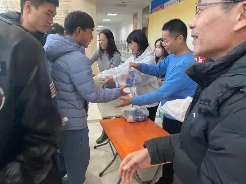 同学们回到学校后,学院党委书记马桂霞、院长孙延林、副院长张运亮和副院长戚克敏在特教楼为同学们送上爱心餐包,体育教育与教育科学学院学生会的志愿者们在学院团委的指导下事先布置好会场、分装营养品,在献血期间做好志愿服务工作。相关职能部门通力协作,为献血工作的顺利开展保驾护航。