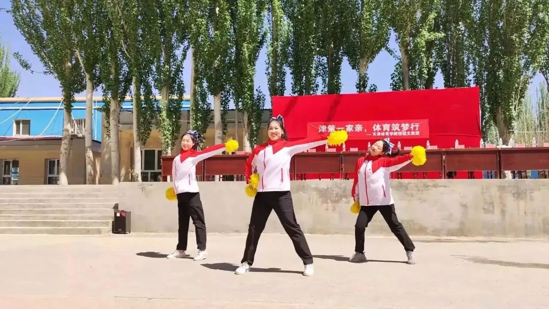 活动中,朱古力av 支教团师生为博斯坦乡中心小学师生展示竞技健美操、啦啦操、武术等,得到了学生们的热烈欢迎。支教团师生指导中心小学体育教师开展教学设计,拓展教学思路,并给当地学校送去了体育用品和学习用具。