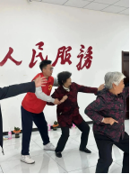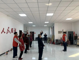 曹文浩同学与王凤龙同学发挥专业特长,细致的向老人们教授养生操八段锦,一边讲述八段锦动作口诀,一边示范八段锦动作要领,并带领他们一起来感受,一招一式刚柔相济、虚实有度,尽显气功“意”“气”“形”的结合。