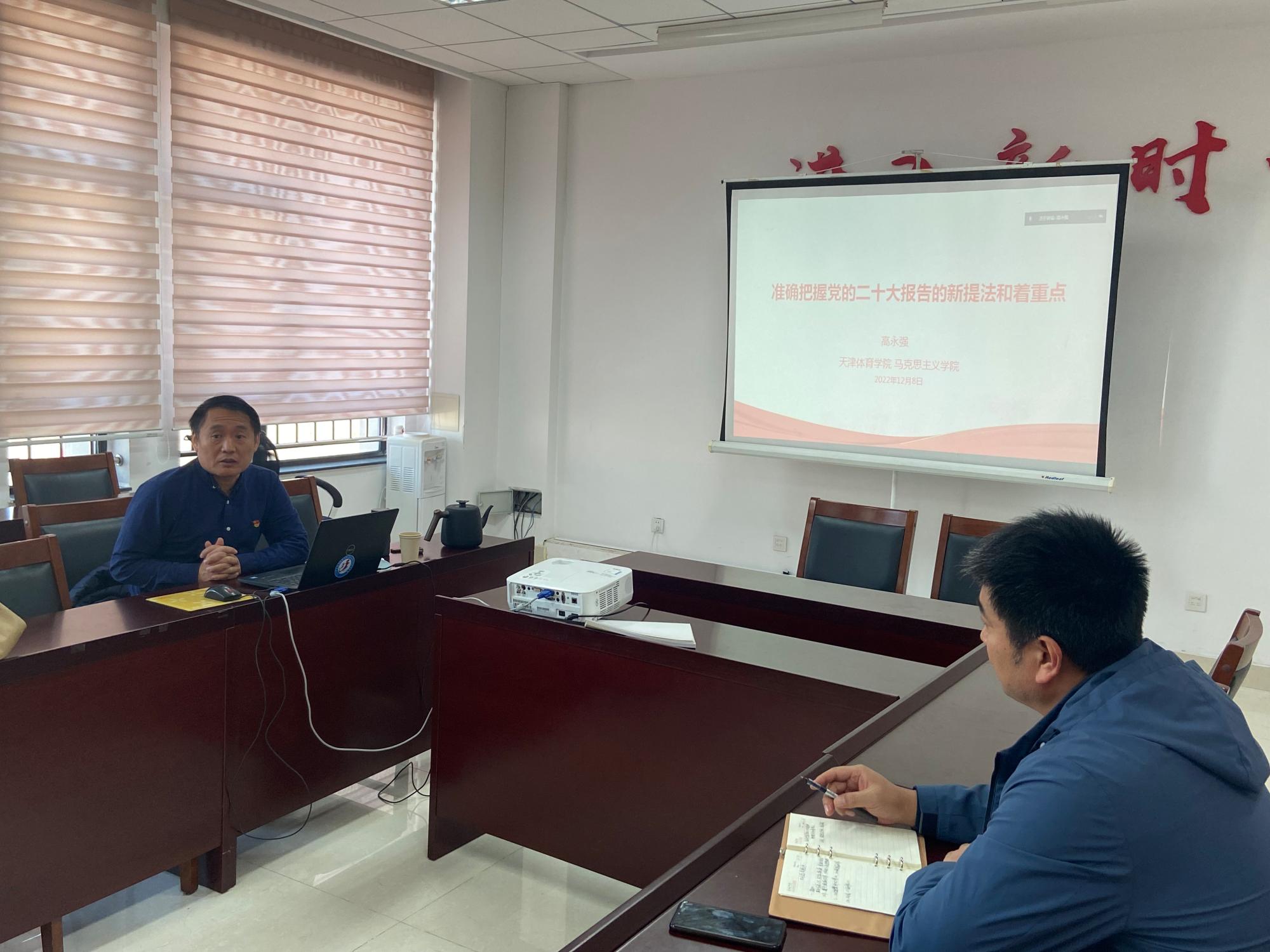 为深入学习贯彻党的二十大精神,准确把握党的二十大报告的精神内涵,12月8日,学院党委邀请马克思主义学院院长高永强教授开展主题宣讲会。会议由学院党委书记田向国主持,学院领导班子、全体管理干部、辅导员、部分教师和全体入党积极分子培训班学生通过线上线下的形式参会。